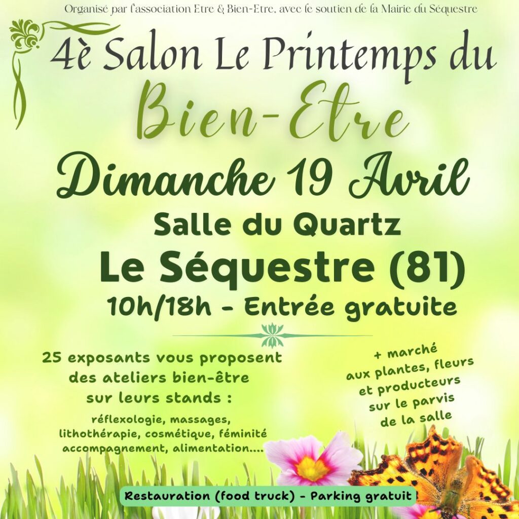 Retrouvez moi au salon du bien être dimanche 19 avril 2026. Séances découverte de la réflexologie plantaire (10€ 30 minutes). Atelier d’ auto-massage des mains à 16h (gratuit)